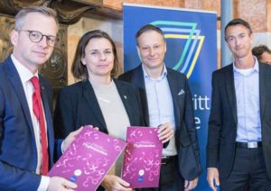 Mikael Damberg Närings- och innovationsminister, Isabella Lövin klimatminister och vice statsminister, Christian Clemens vd BRA, Henrik Littorin Generalsekreterare Svenskat Flyg.