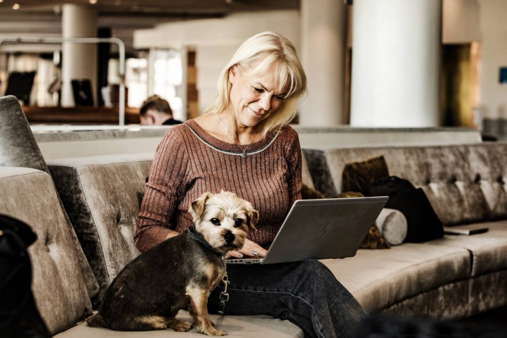 Vi går tre trappor upp och sätter oss i det öppna kontorslandskapet som är en del av Scandic nya coworking-space och konferensavdelning. I ett mötesrum sitter en av Liia Nõus kollegor och pratar i telefon. Vi sitter mitt i landskapet.