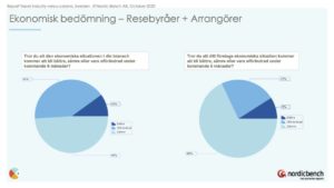 I undersökningen gör också närmare 70 procent av beslutsfattarna på resebyråerna och researrangörerna bedömningen att deras ekonomiska situation till och med kommer att vara sämre om sex månader än vad den är i dag. Detta framtidsscenario bekräftas också av andra mätningar vi gör.