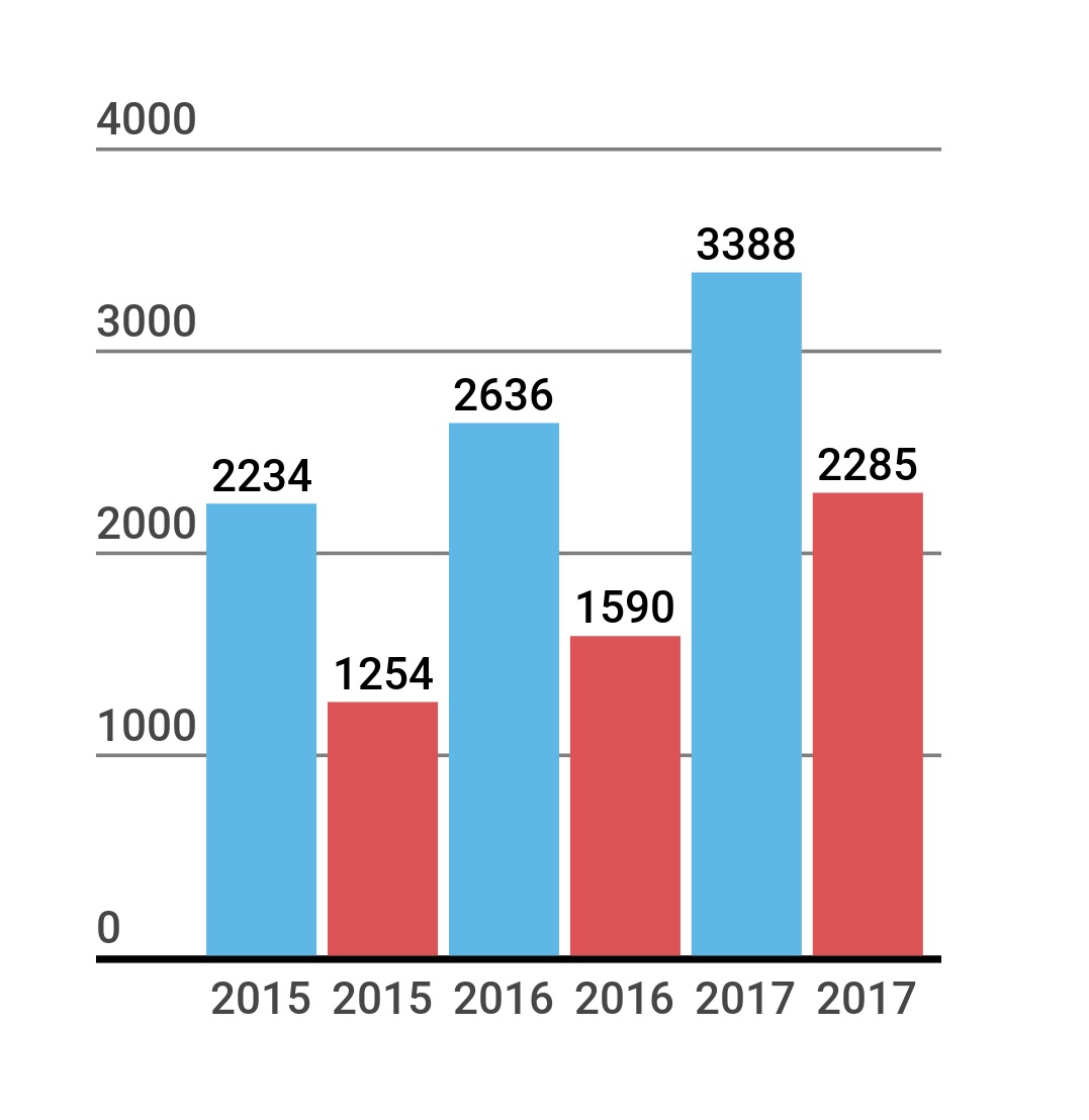 I vilken utsträckning har anmälarna fått rätt i ärenden om reguljärresor, som till stor del gäller ärenden om rätten till kompensation enligt EU-förordning 261/2004 ? (De röda staplarna.)