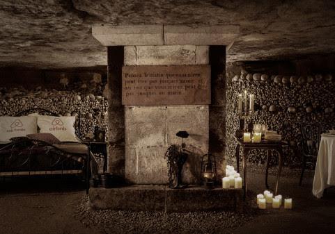 Hotell Den 31 oktober förvandlas en av gravplatserna i Paris katakomber till ett sovrum.