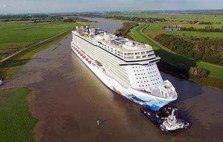 Rederi Snacka om precisionsnavigering, när nya Norwegian Escape transporterades på floden Ems från varvet till den…