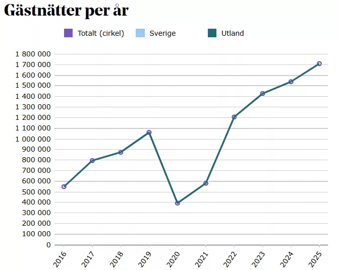 Kring år 2016–2017 ökade antalet gästnätter i Sverige från USA dramatiskt jämfört med åren dessförinnan, enligt Tillväxtverkets siffror. Efter pandemin fortsatte tillväxten av gästnätter i Sverige från USA att öka stadigt och har nu aldrig varit fler.