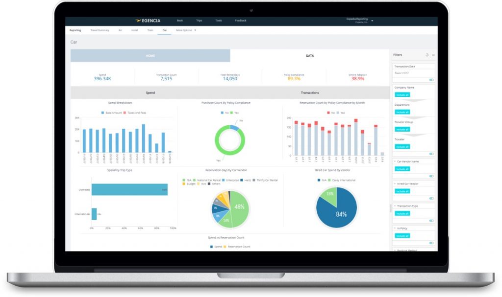 Att vara en datadriven organisation är nyckeln till att förbli konkurrenskraftig. Men nuvarande resehanterings- och rapporteringssystem kräver att ansvariga spenderar timmar på att hantera filer och att kombinera och matcha offline- och online-data. Målet är att få fram värdefulla insikter men det krävs i slutändan nästan alltid hjälp från dataspecialister. Egencia Analytics Studio erbjuder en konsoliderad vy genom visuella renderingar, filter och anpassningsbara widgets. De reseansvariga kan bland annat visualisera vilken effekt de bokningar som sker tidigt har kopplat till företagets resepolicy och restyp (internationell, inrikes, etc.).