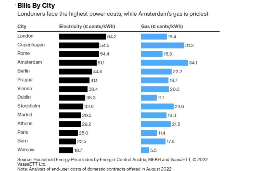 Redan dyrt blir dyrare, är budskapet. Vilket naturligtvis båda drabbar hushållen och företagen. Den goda nyheten är att det är ännu värre i andra länder. Londonbon betalar dubbelt så mycket för energin som stockholmaren. Liz Truss har en dubbelt så stor utmaning som Magdalena Andersson.