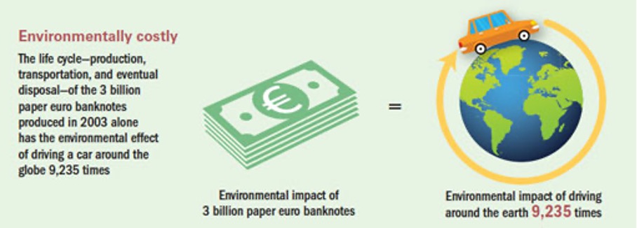 – Till exempel, fann studien, ger polymersedlar en 32-procentig minskning av den globala uppvärmningen och 30-procentig minskning av det primära energibehovet jämfört med papper. Viktigast är att polymersedlar håller mer än dubbelt så länge som papperssedlar – och högre valörer, som hanteras mer sällan, håller ännu längre. Detta innebär att färre sedlar behöver tillverkas och distribueras. Och polymersedlar väger mindre än papperssedlar, så även deras transport och distribution är bättre för miljön, skriver hon.