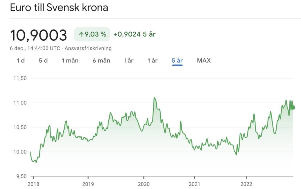 Överallt har kriget i Ukraina och stigande priser på råvaror och el ökat priserna generellt. Men till det kan läggas effekterna av växelkurserna på den flytande svenska kronan.
