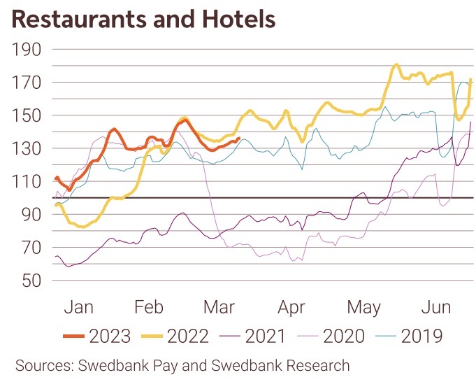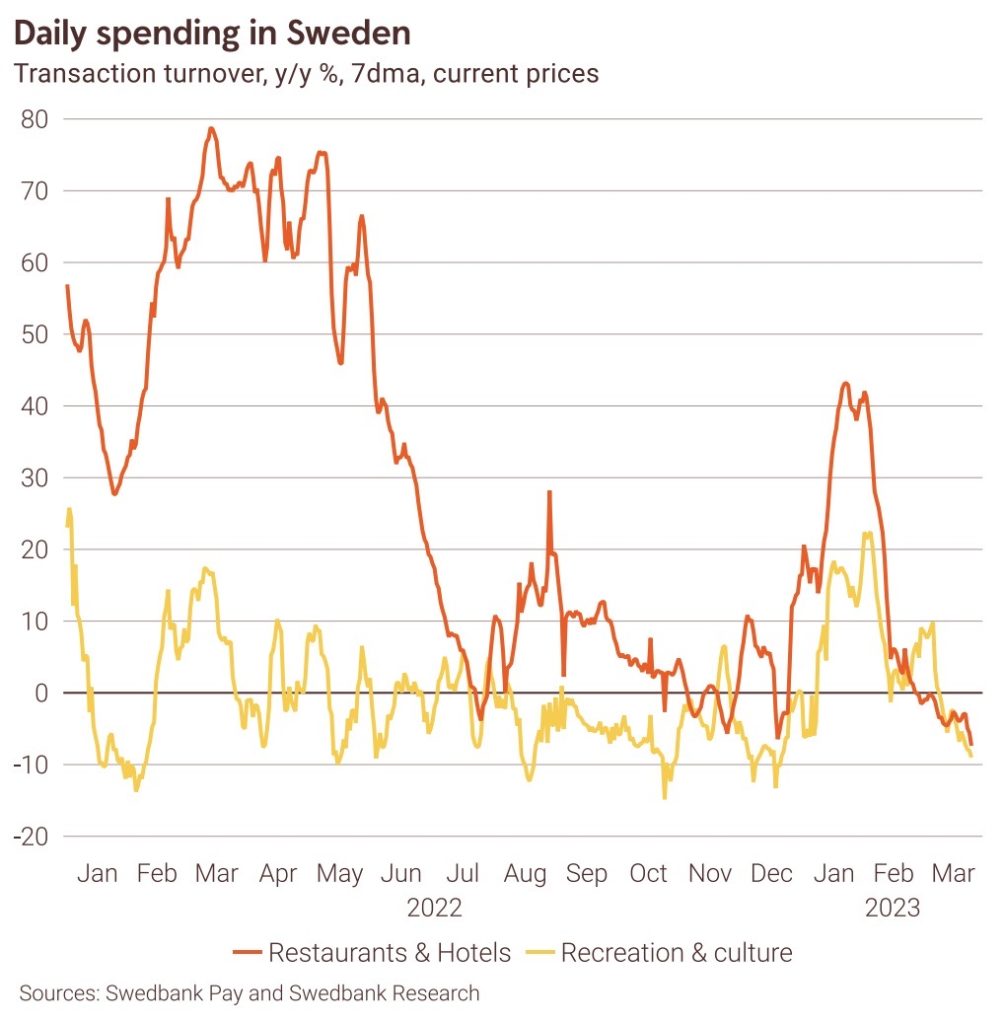 Swedbank Macro Research bygger på faktiska korttransaktioner undser perioden.