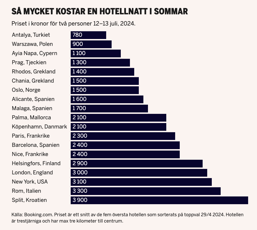 Billigast när det kommer till kronans utveckling är Turkiet. Den turkiska liran har fallit med hela 36 procent mot kronan på ett år. Samtidigt har den turkiska inflationen varit högre än den svenska, så det är inte så billigt som man kan tro, säger SEB:s valutastrateg till Di.