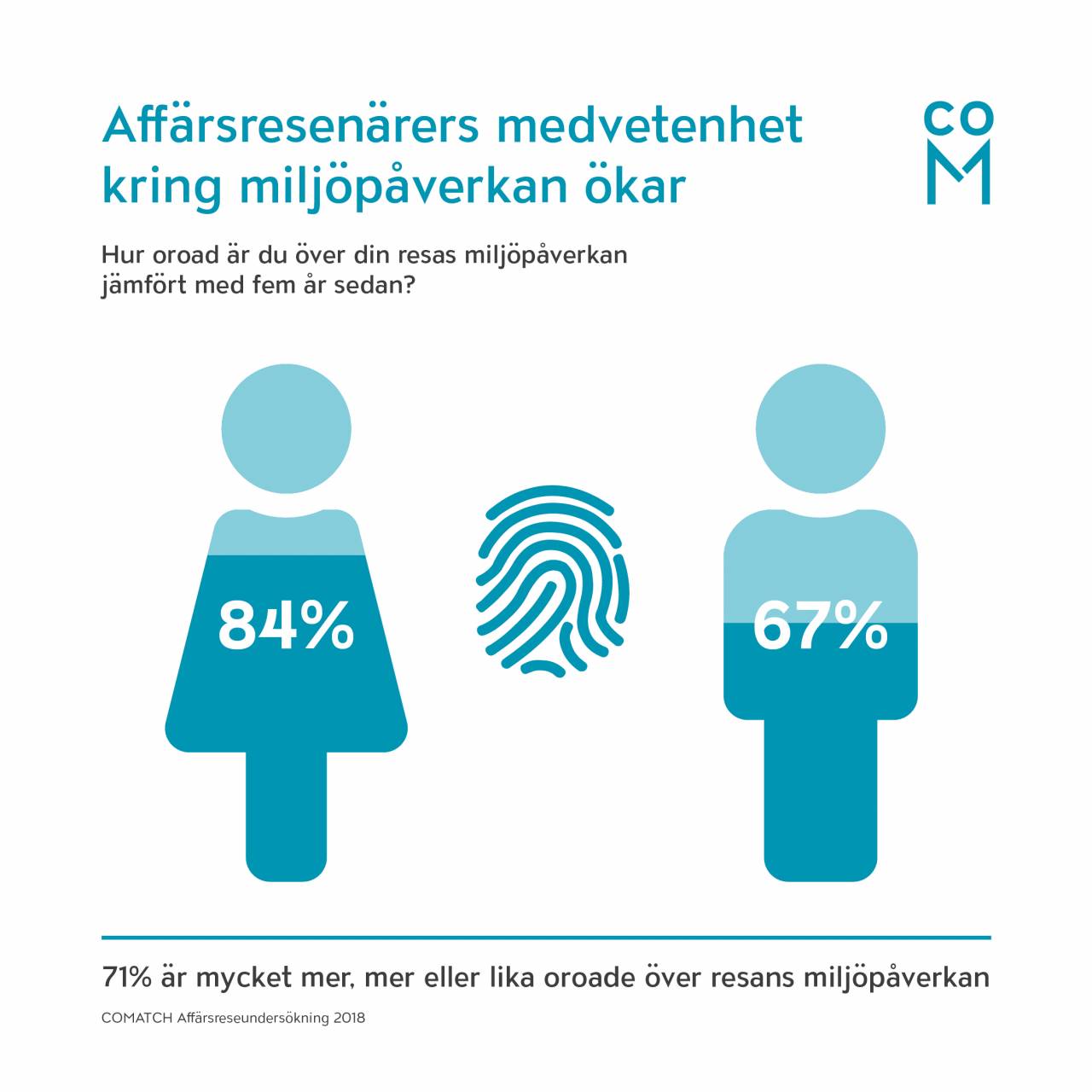 Klimat och miljö blir en allt viktigare fråga även för affärsresenärer. Enligt en nyligen genomförd undersökning av COMATCH, en av världens ledande marknadsplatser för oberoende konsulter, är en tredjedel av affärsresenärerna lika eller mer oroade för resans klimatpåverkan idag, jämfört med för 5 år sedan. De yngre åldersgrupperna är mer oroade än de äldre. Även kvinnor oroar sig mer än män. 20 procent oroar sig inte alls.