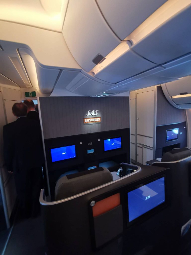 SAS Business. 40 säten med 18,5” skärm för in-flight entertainment med högre upplösning, PC-uttag och USB-uttag, bättre ledade säten, separat reglage för nackstödet, ett nytt vikbart brickbord med en personlig enhetshållare och mer slitstark stoppning i sätena. Sängarna i Business class är minst 196 cm långa, vissa ännu längre, och SAS har installerat ett slitstarkt fotstöd som även kan ge lätt fotmassage.