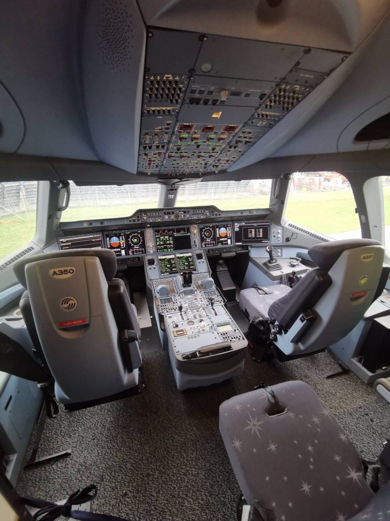 A350 innebär även en ny arbetsmiljö för besättningen. Förutom åtta rymliga bäddar för kabinbesättning och piloter, har köken fått ny design för att kabinbesättningen ska få större och bättre arbetsytor. Dessutom har A350 iPads ombord som bidrar till en mer personlig service och gör det lättare för besättningen att automatiskt rapportera brister till underhåll med mera.