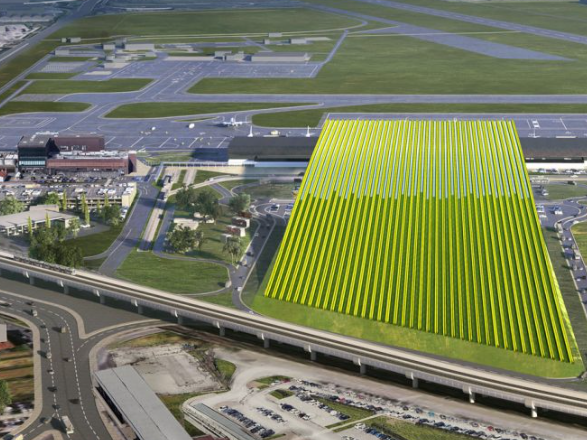 Byggnadens tak ska luta ungefär som en toskansk vinterass och täckas med 38 rader av regionens bästa vinplantor var och en omkring 500 meter lång.
