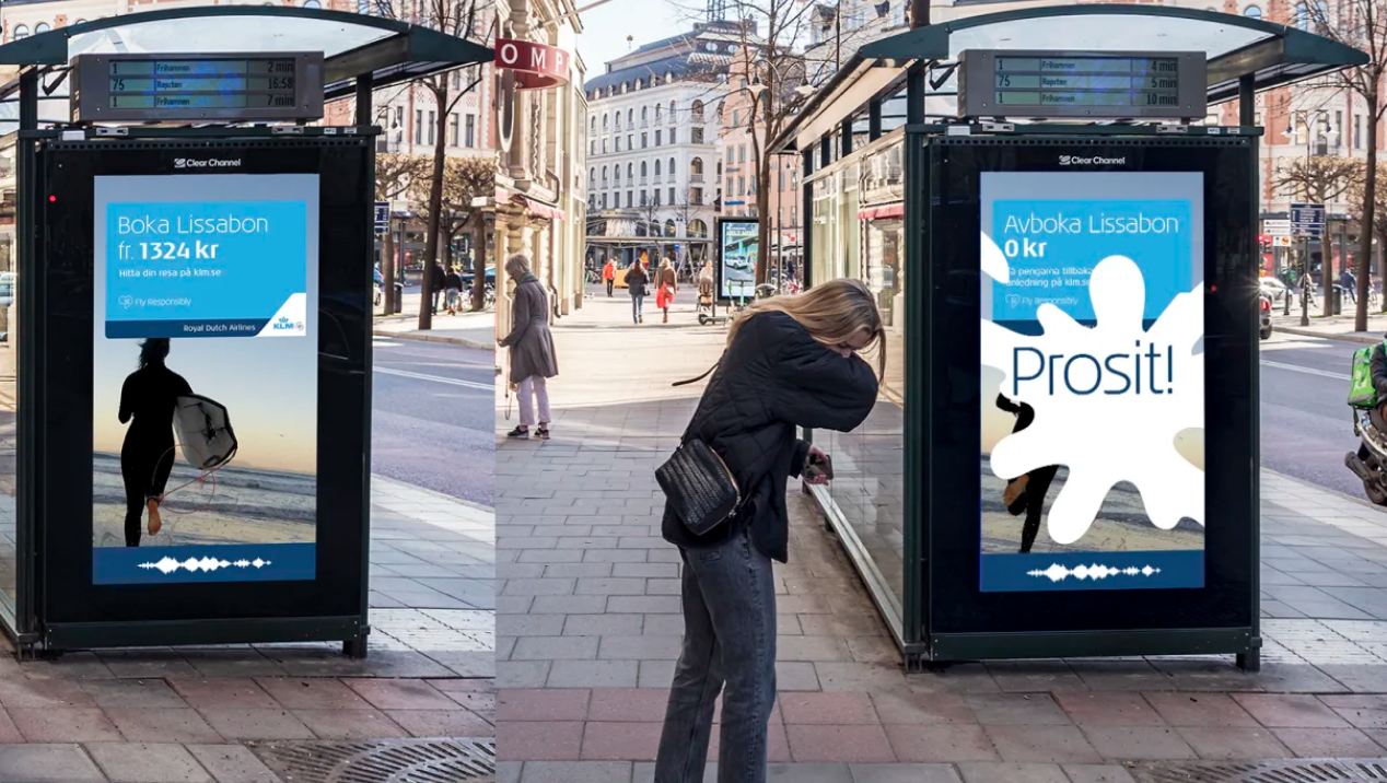 Det faktum att vi erbjuder helt öppet köp gör att ressugna kan boka och avboka fram till dagen före avresa, oavsett anledning, och få pengarna åter. Det lyfter vi fram på ett kul och annorlunda sätt genom en interaktiv AI styrd utomhustavla tillsammans med Clear Channel, vår reklambyrå M&C Saatchi och yogainstruktören, tiktoker och komikern Dag Tolstoy. Vi bjuder på lite extra omtanke i dessa tider, säger Maria Hagelberg, Marknadschef KLM North Europe.