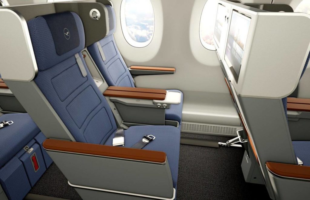 Precis som Lufthansas Allegriskoncept har sätena i premium economy en fixerad hård rygg som innebär att fällandet inte inkräktar på den bakre grannens utrymme. Men det är också de första premium economy-sätena i världen med motoriserad lutningsfunktion à la businessklass. Även fotstödet är motoriserat och det finns skiljevägg mellan sätena för mer avskildhet.