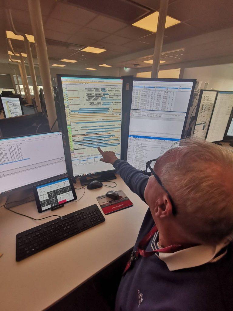 När väl ett beslut fattas om att en rutt är försenad går det automatiskt ut ett sms till alla passagerare och informationen på den aktuella flygplatsens skyltar ändras. När färjan Viking Sky kom i sjönöd för några dagar sedan var det i detta rum man beslutade om att skicka plan till Molde och Trondheim och flyga hem passagerare.