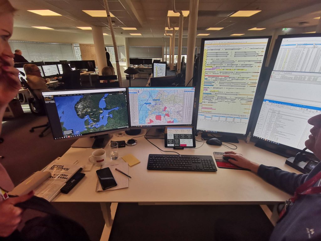 Här arbetar över 500 personer med försäljning, marknadsföring och driften av bolagets knappt 200 flygplan över hela världen. De senare styrs från ett rum som heter IOCC. Varje dag genomför Norwegian 650 turer och allt styrs från rummet på fjärde våningen. På en skärm ser jag flygplanen i realtid. På en annan skärm finns planeringen. Vilka plan är i tid och vilka är försenade. Just nu står 18 maskiner på marken efter Boeings driftstopp på Boeing 737 Max 8.