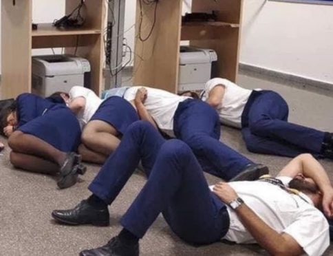Reseindustrin Ett foto på flygpersonal som tvingas sova på golvet har orsakat en storm mot Ryanair…