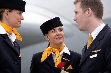 Flyg Lufthansas businessresenärer kommer numera att bli uppassade av flygbolagets egna servitriser och servitörer under långflyg.