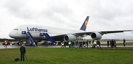 Flyg För första gången landade en superjumbo, Airbus A380, i Sverige på onsdagsförmiddagen.