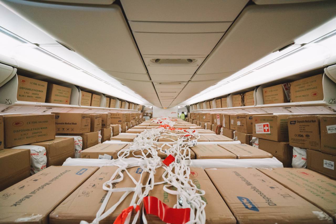 Boeing 777 transporterade sprutor och flera miljoner kirurgiska masker. På denna flygning med endast godsfrakt transporterades inga passagerare, materialet transporterades i flygplanets lastutrymme och passagerarkabinen. Flygningen från Shanghai landade på Genèves flygplats kl 21.45 den 21 april.