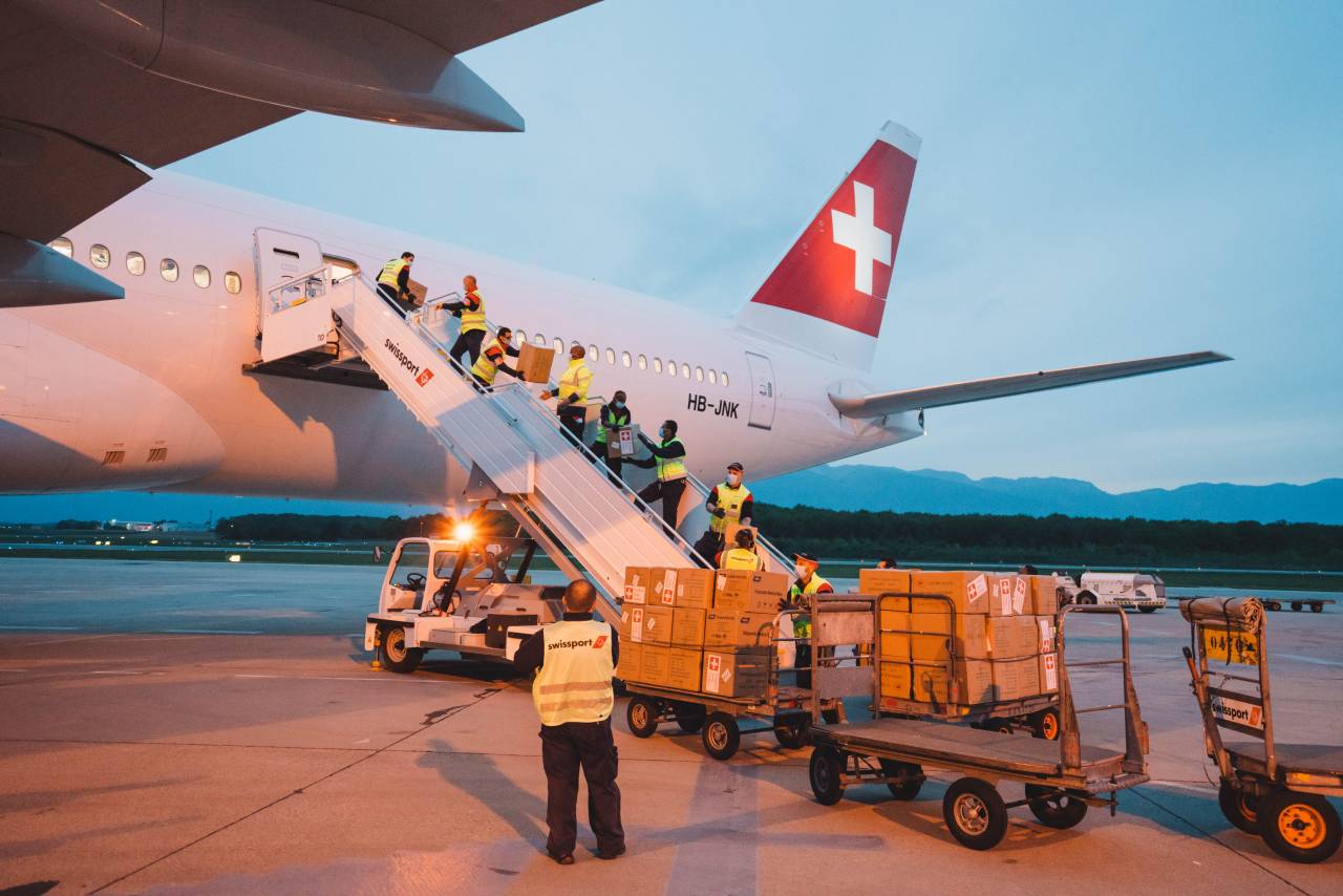 Boeing 777 transporterade sprutor och flera miljoner kirurgiska masker. På denna flygning med endast godsfrakt transporterades inga passagerare, materialet transporterades i flygplanets lastutrymme och passagerarkabinen. Flygningen från Shanghai landade på Genèves flygplats kl 21.45 den 21 april.