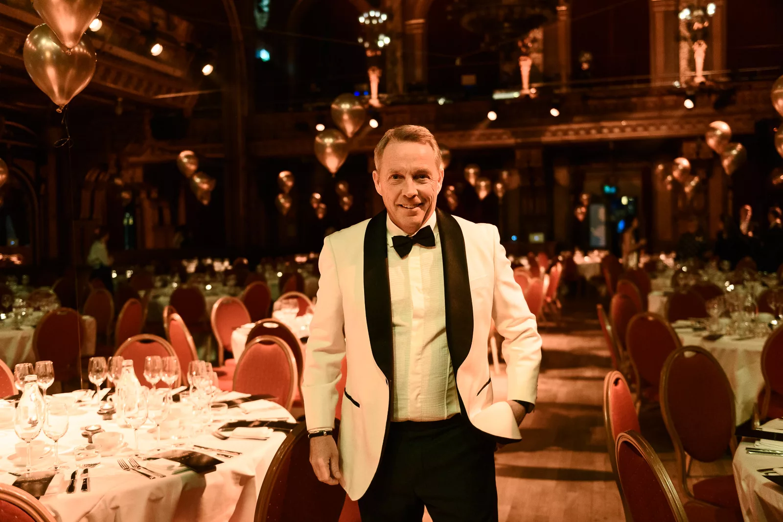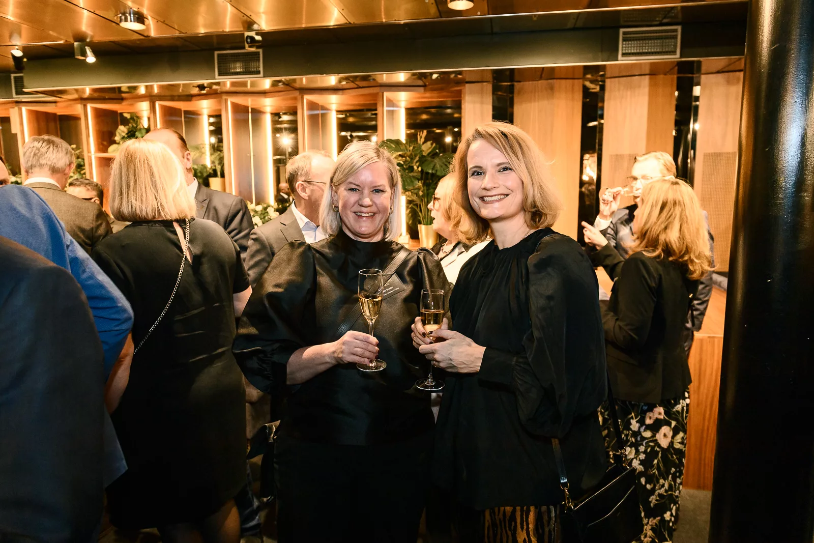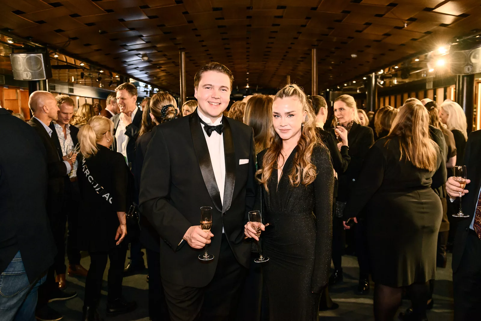 Kvällens konferencier, Carina Nunstedt, äntrar scenen.