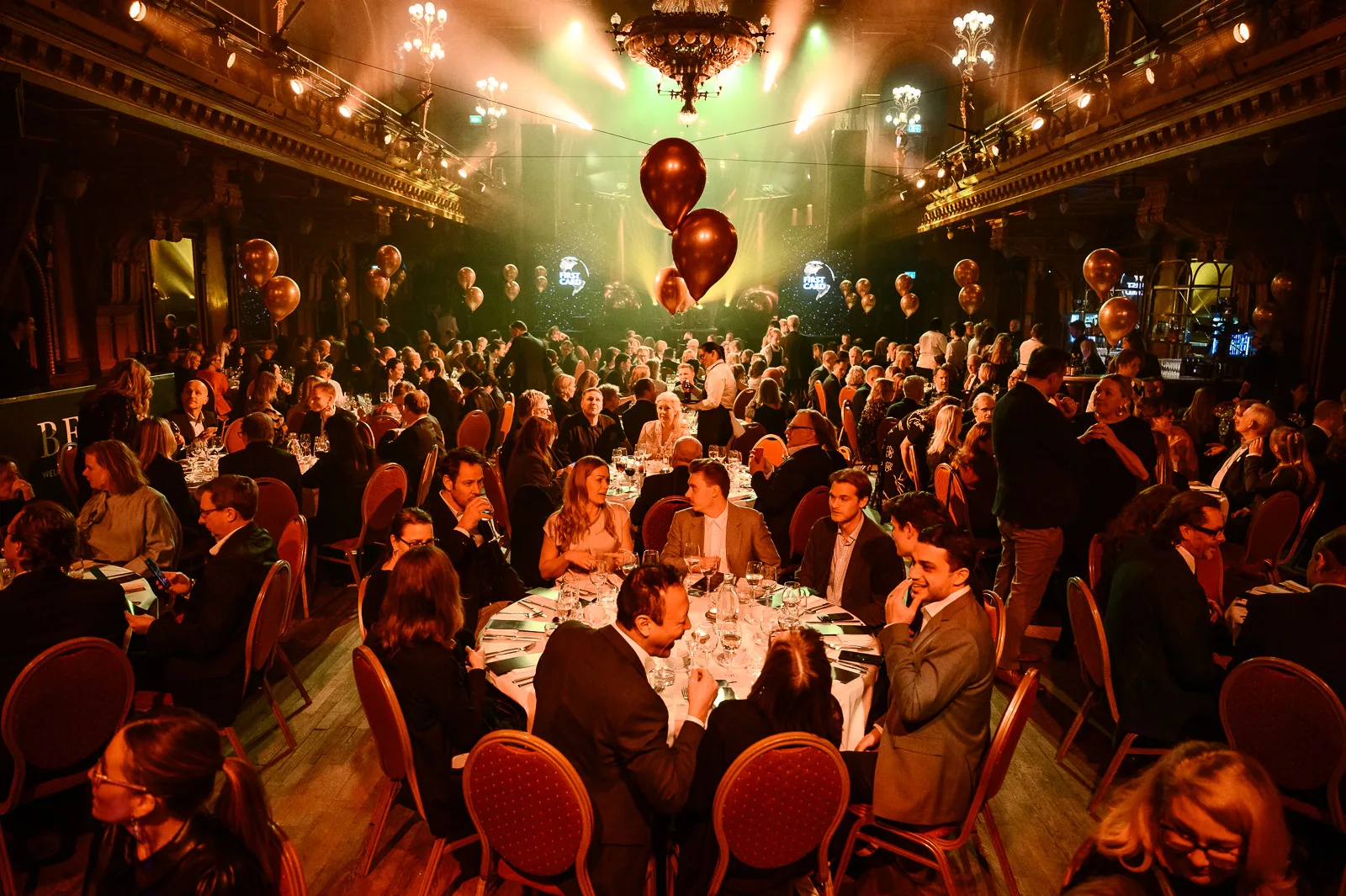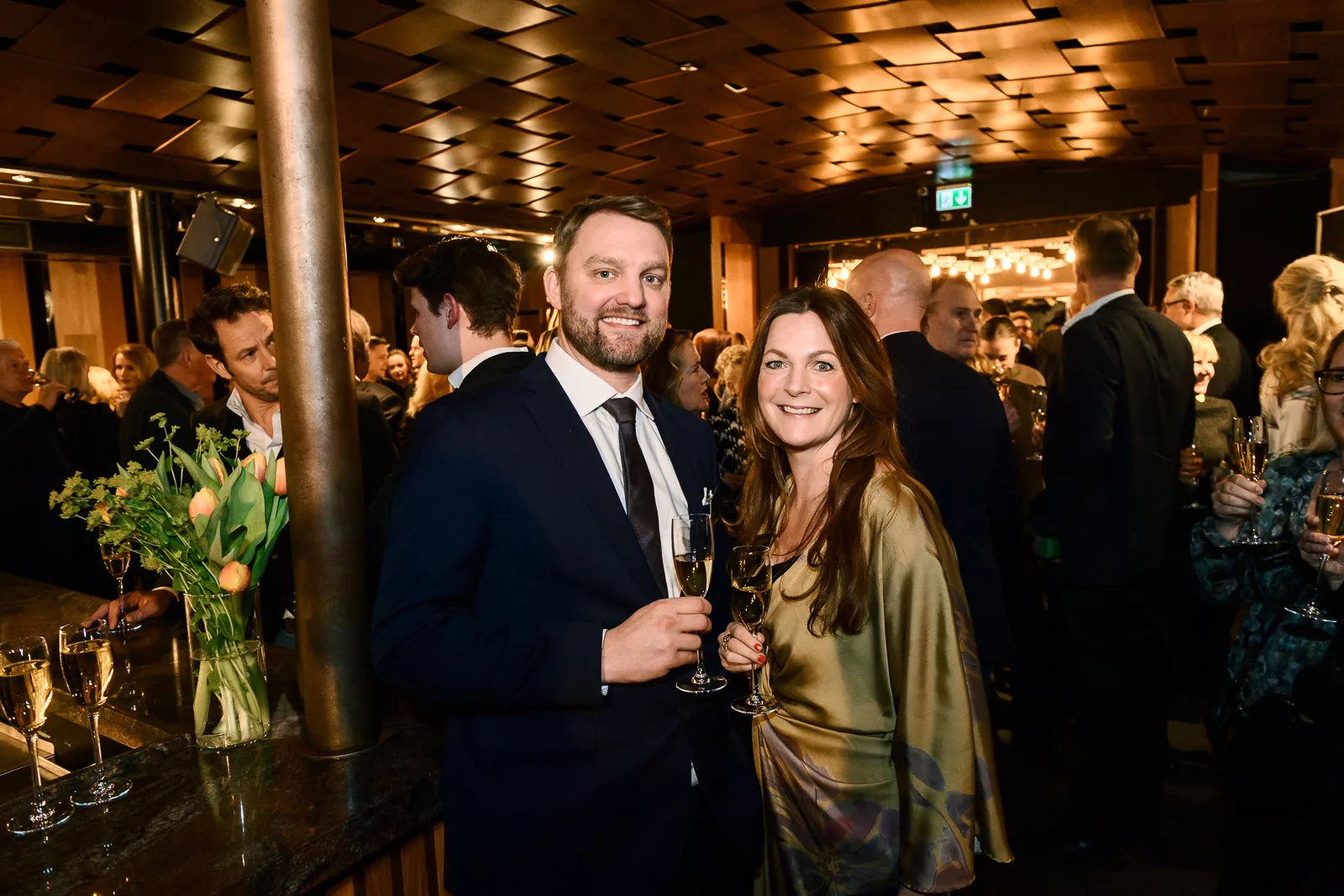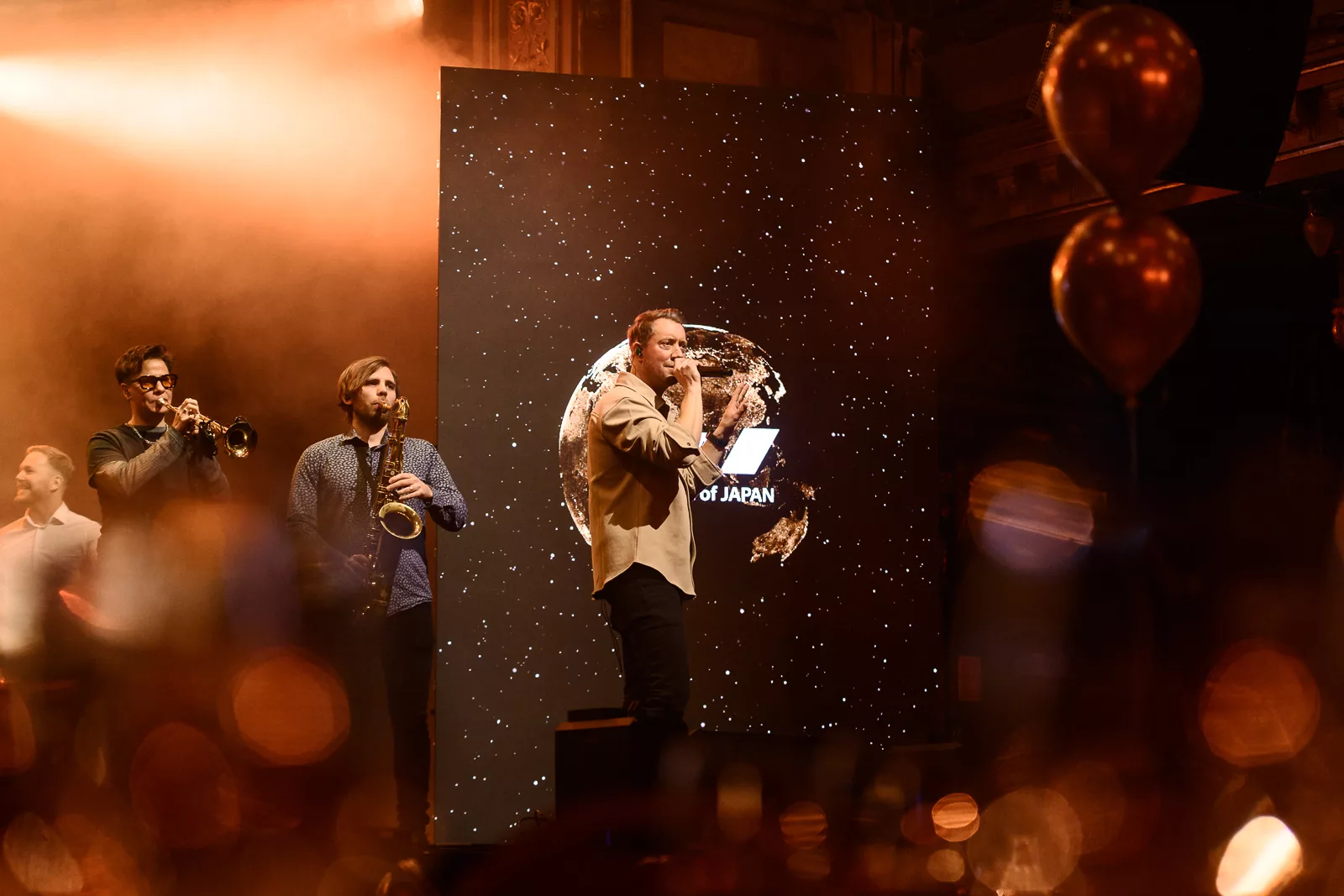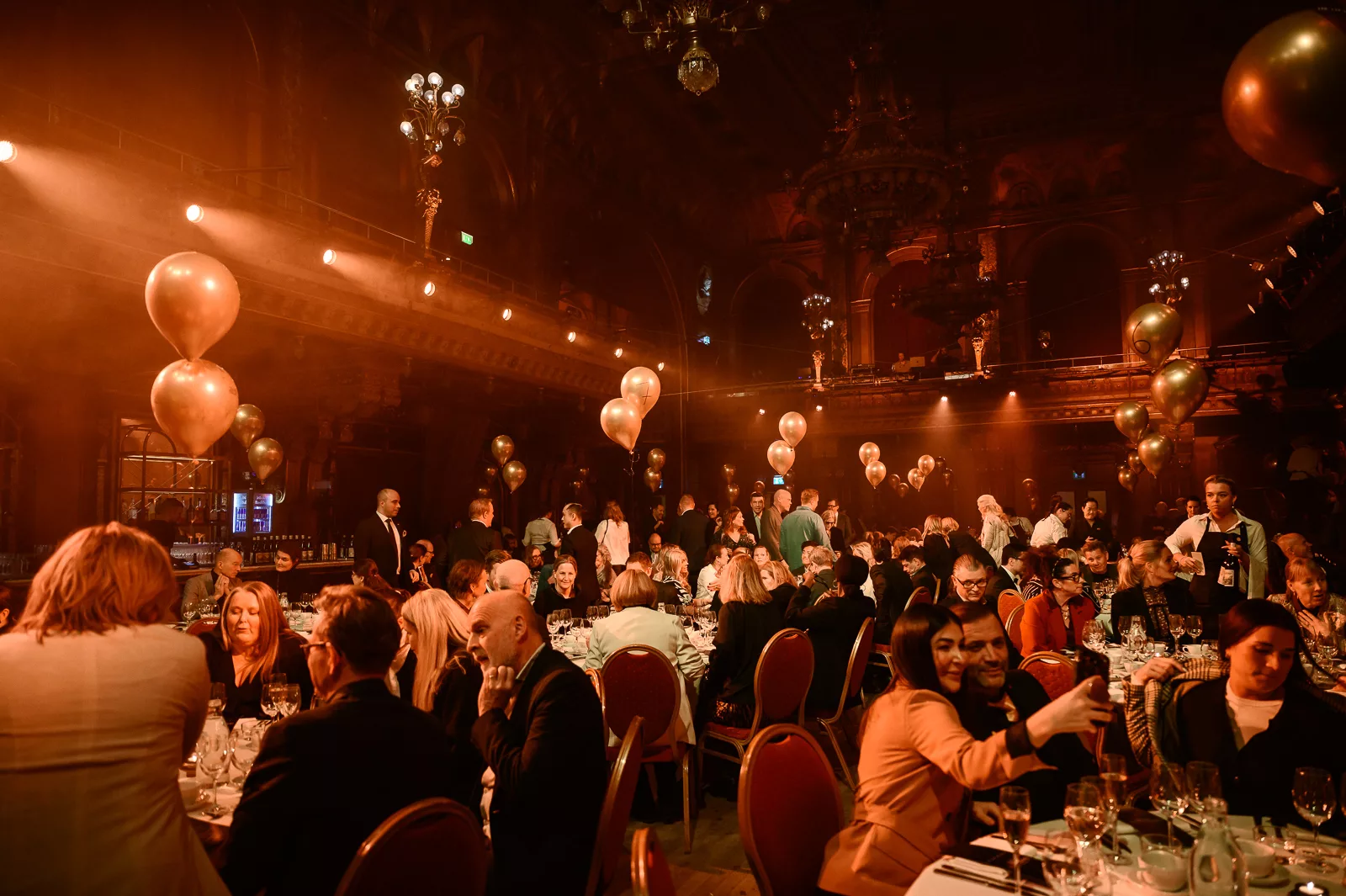 Kvällens konferencier, Carina Nunstedt, äntrar scenen.
