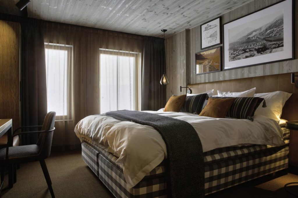 Hotellet erbjuder 14 ombonade dubbelrum, restaurang, vardagsrum och relaxavdelning, en kompromisslös byggnad med familjär och avslappnad stämning. Med det gamla lokstallets fornminnesmärkta ruin som skär rakt igenom den nya byggnaden, skapas en spektakulär påminnelse om platsens spännande historia. Intill muren har dessutom en av de över hundra år gamla smörjgroparna förvandlats till vinkällare. Historien får nytt liv och blir en del av hotellets egen berättelse. Verksamheten drivs av två av landets mest välmeriterade personer inom äventyrsturism, guidning, hotell och gastronomi, Johan ”Jossi” Lindblom och Patrik ”Strumpan” Strömsten.