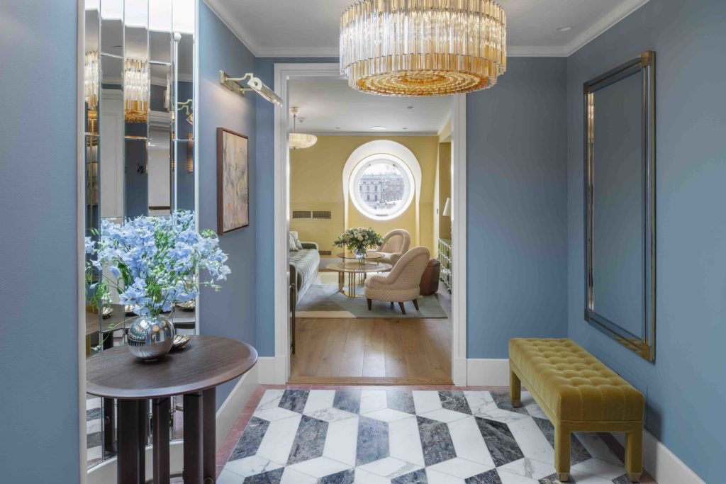 Den traditionen har nuvarande vd Pia Djupmark byggt vidare på när hon lät renovera flaggsviten och grannen taksviten högst upp i huset. Bakom bägge sviterna, som förstås kan öppnas upp till en gigantisk, finns den svenska inredaren Martin Brudnizki. Han är världsstjärna med bas i London och New York, men detta är hans första uppdrag i Sverige.
