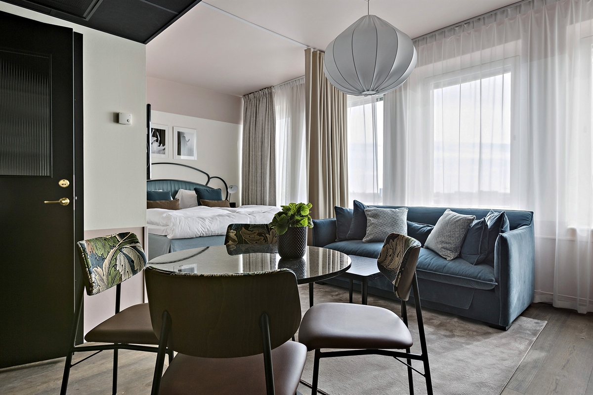 Pressvisning i Solna: Den första april slår dörrarna upp officiellt med 180 rum, 10 våningar och inredning från arkitektfirman Spik Studios. Det geografiska fördelaktiga läget intill E4an och Hagaparken på andra sidan är naturligtvis mer lovande än det tidsmässiga. Men Eva Ilskog, General Manager hoppas på att kreativitet och samarbeten kan ta dem igenom den nu svåra perioden. 35 st rum har pentry och går för uthyrning via Blocket Bostad, då månadsvis.