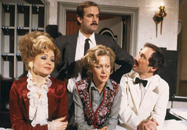 Första säsongen av Fawlty Towers visades på BBC 1975. Den andra säsongen visades 1979. Båda säsongerna skrevs och utvecklades av John Cleese och Connie Booth. 2019 utropades tv-serien av experter till att vara den bästa brittiska komediserien genom tiderna.