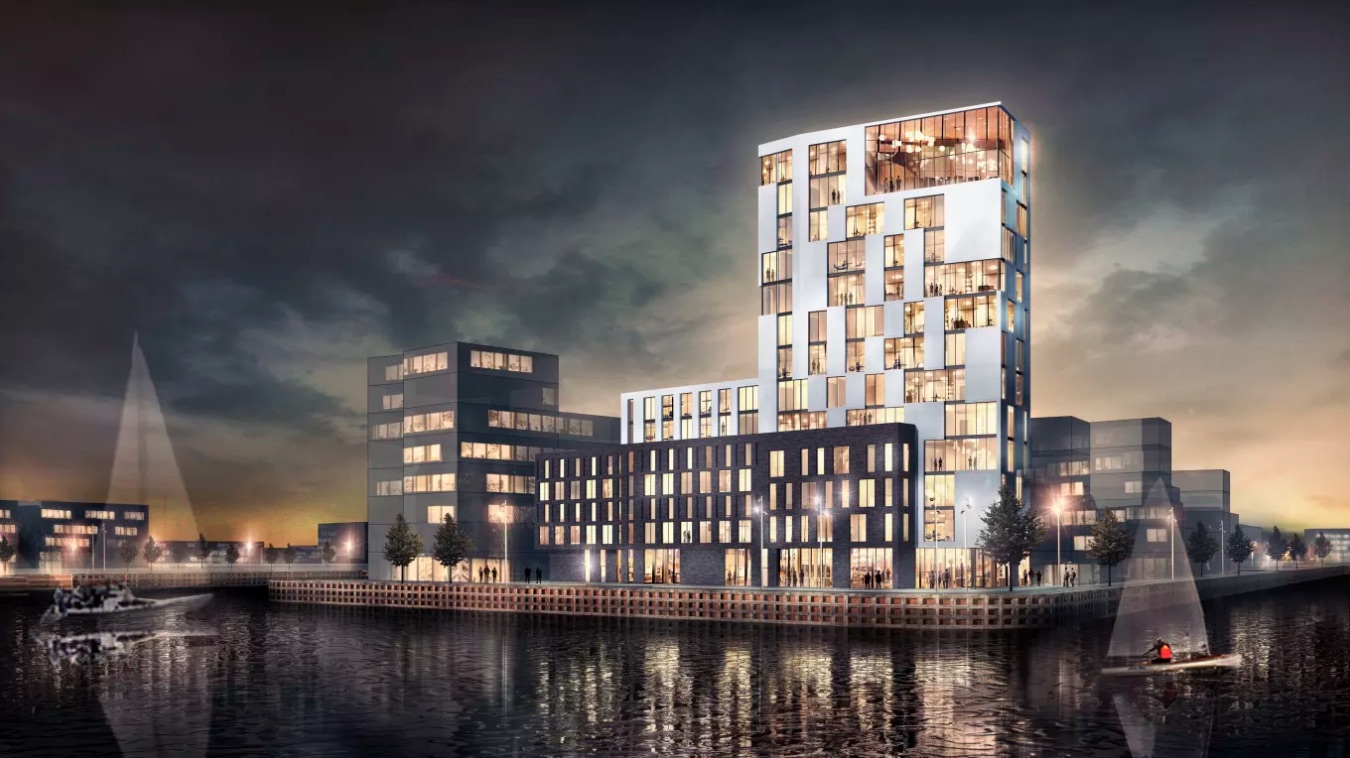 Det nya Scandic-hotellet är del av det stora H+-projektet där den gamla industrihamnen I Helsingborg omvandlas till ett modernt urbant område, kallat Oceanhamnen. Den industriella ytan kommer helt konverteras till att inhysa bostäder, kontor och butiker.