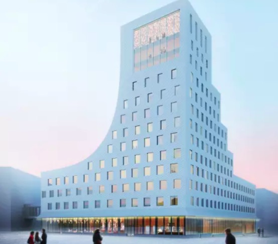 Det nya hotellet kommer att omfatta ca 230 rum, konferens- och mötesrum, restaurang samt skybar och gym på den översta våningen.