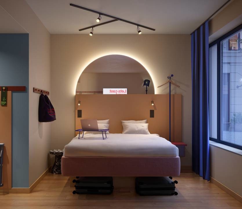 Hotellrummen på Scandic Go har en ung design, smarta lösningar och fyndiga förvaringsmöjligheter, vilket efterfrågas av en ny målgrupp av fritidsresenärer som vill ta del av stadens nöjes- och upplevelseutbud i stället för själva hotellvistelsen.