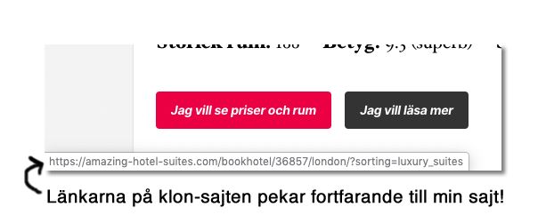 Här är originalet: https://amazing-hotel-suites.com/london/ och här är klonen: http://breakfastandbed.se/london/