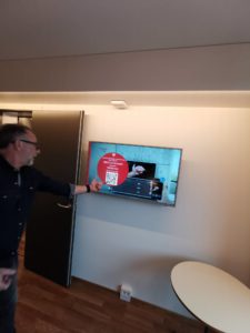Nu trycker man på öppningsknappen i den första april och målet är inte bara att skapa ett hotell. Man vill också bli en hub för människor som bor och arbetar i området. På första plan finns ett stort loungeområde med mat- och fika platser. En trappa upp finns ett hundra kvadratmeter professionellt gym och bastu med stora fönster ut mot natur och motorväg.