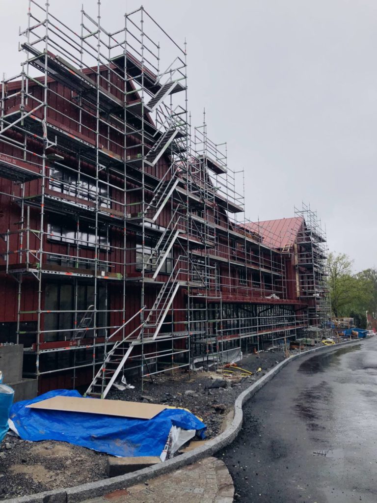 När vi går runt och tittar i byggkaoset känns det overkligt att man en dryg månad senare ska ta emot gäster. Men byggarna ser nöjda ut och bakom damm och smuts anar vi en imponerande byggnad.