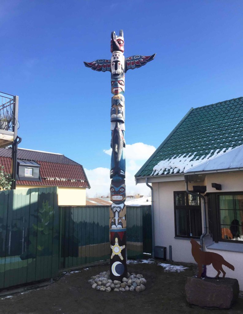Denna sex meter höga totem innehåller djur från Amerika. Tommy Swanson från Swanson’s Travel. Andreas Söderqvist från Dreamlake, Magnus Hermansson, Tommy Swanson och Anders Persson från Swanson’s Travel.