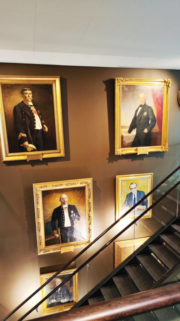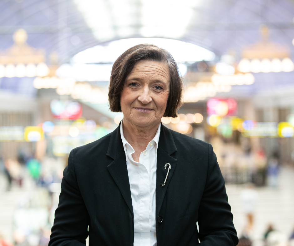 Monica Lingegård tar emot mig i receptionen och leder in mig i sitt arbetsrum. På vägen passerar vi en vägg med många skäggiga gubbar. Porträtten föreställer hennes företrädare. Monica Lingegård är den första kvinnan som är högsta chef på SJ. En gång i tiden stod SJ för statens järnvägar, men som ni förstår är det inte längre ett adekvat namn. Den nuvarande ordningen med olika hattar och ansvar började gälla 1 januari 2001.