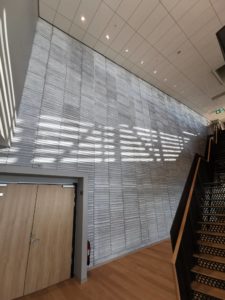 Men byggnaden i sig har en del unika uttryck. Det finns tre sorters mattmönster: havsbotten, havsyta och sandstrand. Väggen i mötesdelen ut mot havet är platsgjuten betong med ett vågmönster. Samma mönster finns i Malmö Live, fast i en annan färg och form.
