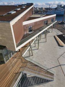 – En av förebilderna har varit Operan i Oslo som man kan gå upp på, förklarar Miri Sumiq när när vi står framför en tävlingsmodell av Sea U. Den finns en våning upp och låg till grund när man sökte uppdraget och bygglov.