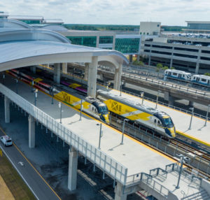 Vi tog en Uber från terminalen till Brightlines nya tågstation i Fort Lauderdale. Den nya tåglinjen mellan Miami och Orlando har bara rullat i några månader, men är redan en succé om ni frågar mig. Här har SJ, MTR, Arlanda Express och Snälltåget mycket att lära. Loungen för oss i Premium höll Pontus Frithiof-klass. Själva tåget var lika ljust och fräscht som Mickan och Fredriks villa i Solsidan. Mackorna som serverades underbara och ja, en kall öl tackar man väl aldrig nej till i Floridas värme, även om AC:n ombord var perfekt. Alltså inte iskall så att man blir förkyld.
