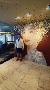 Nu vet jag mer om båten Celebrity Ascent som vi bor på. Detta är det fjärde skeppet i serien Edge och en av 16 farkoster i Celebrity Cruises flotta. Varumärket finns under Royal Caribbean Group som totalt har 65 skepp. Bolaget är noterat på New York Stock Exchange och ett av världens största inom fritidsresande. I koncernen ingår också Silver Sea som är ett ultralyxmärke inom kryssning. Celebrity Cruises är premium, alltså konkurrerar man med femstjärniga hotell av typen Four Season i Dubai och Las Vegas och förstås med kryssningsbolaget Norwegian Cruise Line.
