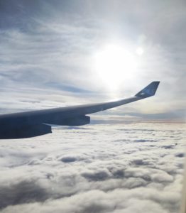 Jag älskar att flyga. Så är det bara. Det finns något mysigt med att man trycks in i ett metallrör och sedan färdas över en ocean i 900 kilometers hastighet en mil upp i luften. Vi är knappt 400 personer som gör detta tillsammans.