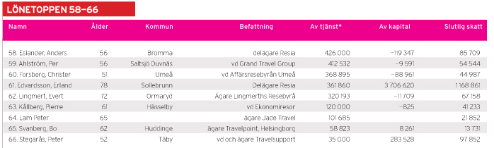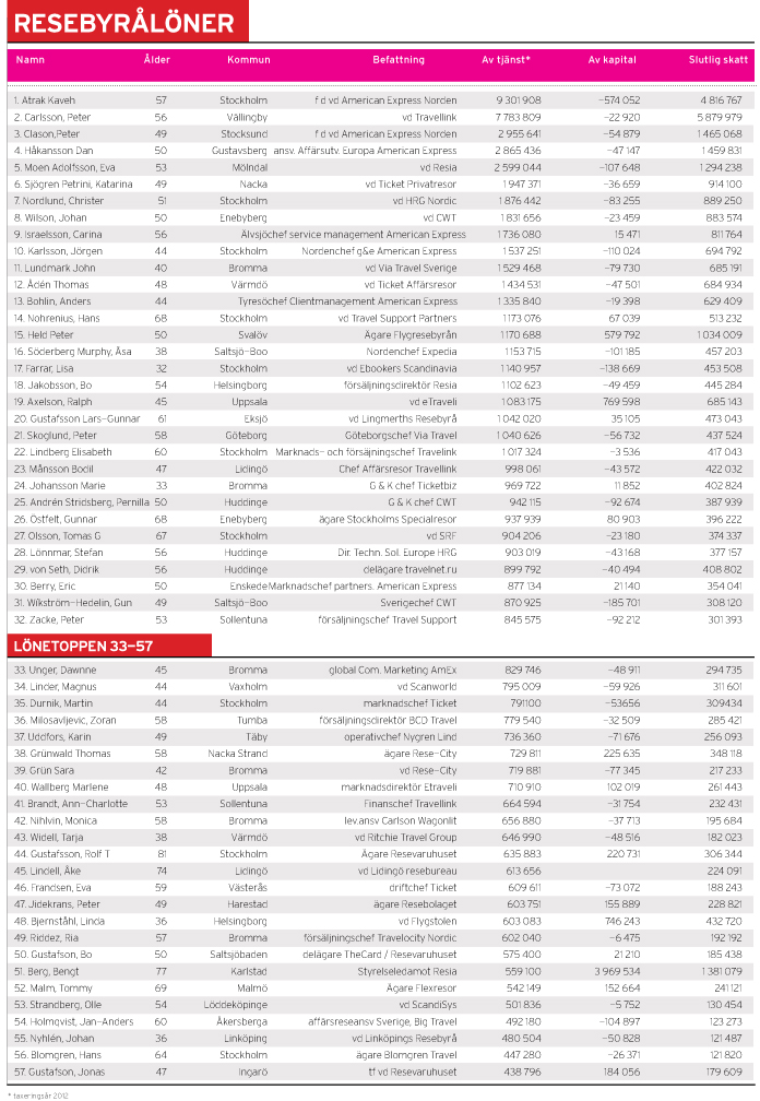 Vad tjänar toppcheferna i just din del av resebranschen? För första gången har TN sammanställt en unik lista över 333 rese toppchefer – uppdelat bransch för bransch. Den finns endast på webben, exklusivt för våra betalande tidningsprenumeranter.