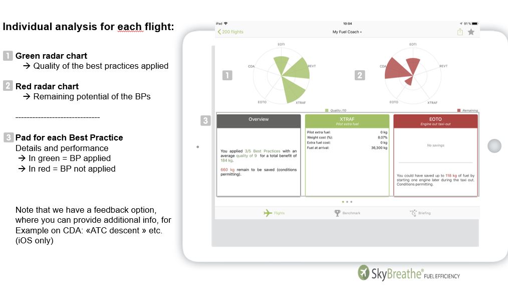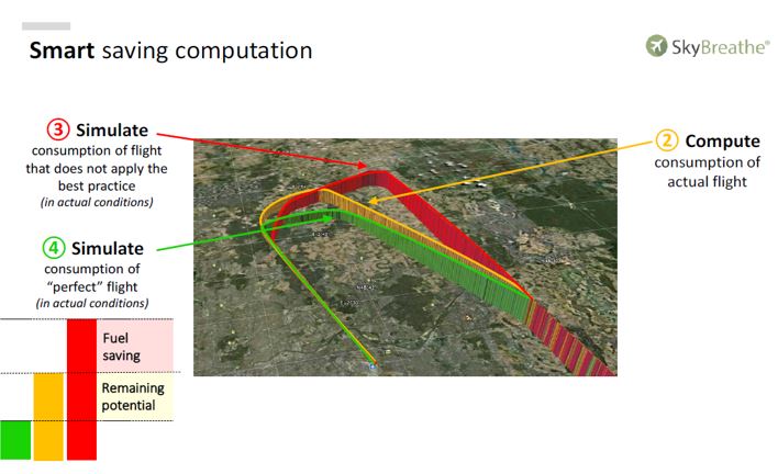 Verktyget och applikationen SkyBreathe analyserar hela flygdriften vilket gör det möjligt att anpassa varje flygning optimalt med minskad bränsleförbrukning och lägre utsläpp som resultat. Med SkyBreathe ser man vilka flygningar som förbrukar mer bränsle än planerat och kan då vidta enkla åtgärder för att få ned bränsleförbrukningen. Appen använder så kallade Big Data algoritmer och har utvecklats via ett EU-finansierat Clean Sky projekt.