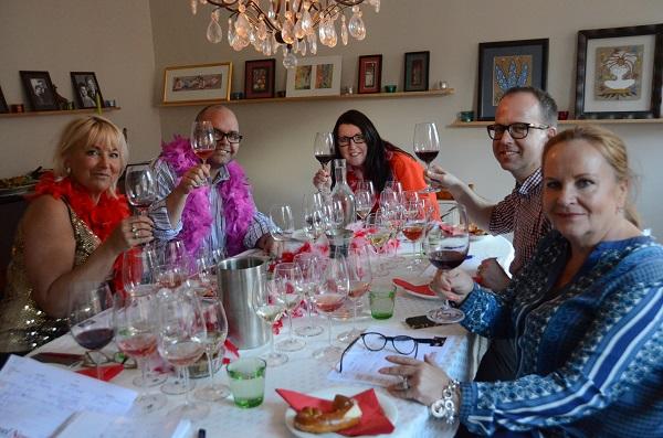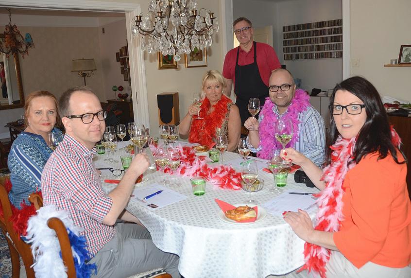 Till tänderna laddade med fjäderboor, flaggor, testformulär och sex olika sorters österrikiska viner (tre vita, två rosé och ett rött och med högtalarna pumpades årets 39 bidrag drog schlagervinprovningen i gång. Men vilket österrikiskt vin passar bäst til Eurovisionfinalen ien? Och vilken land vinner på lördag? Åsikterna var heta och mycket olika, precis som omröstningen i Eurovision.