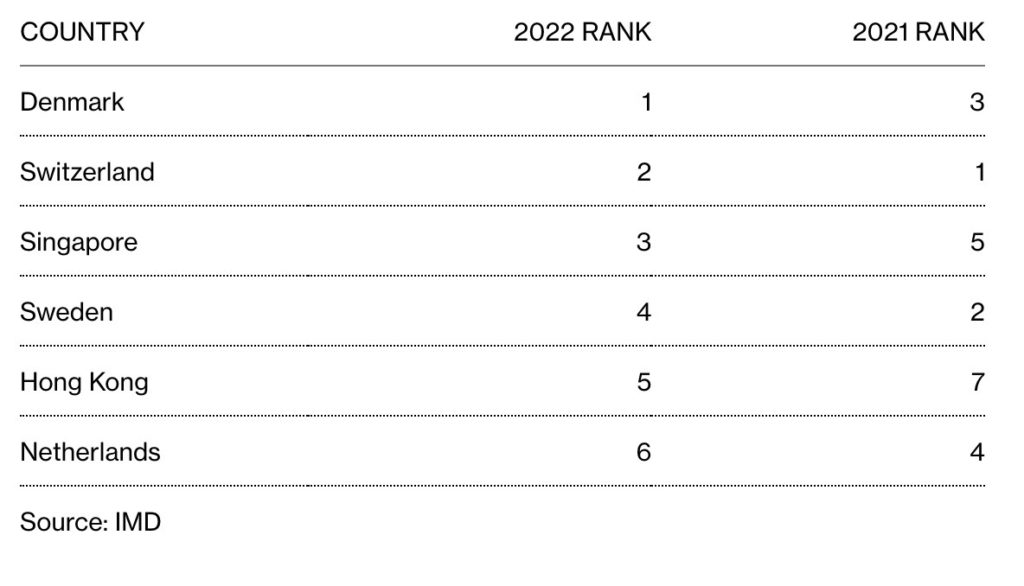 Danmark tar över Schweizs förstaplats som den mest konkurrenskraftiga ekonomin i världen. De tar sig från tredje plats till första i IMD Business Schools World Competitiveness Ranking som har gjorts i 34 år.
