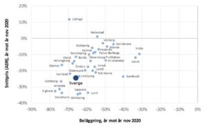 På många marknader börjar negången nu närma sig den nedgång som skedde i våras när tappet var som störst, och som tidigare under pandemin är det storstadsregionerna som ligger i botten.